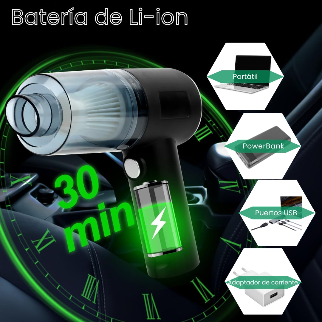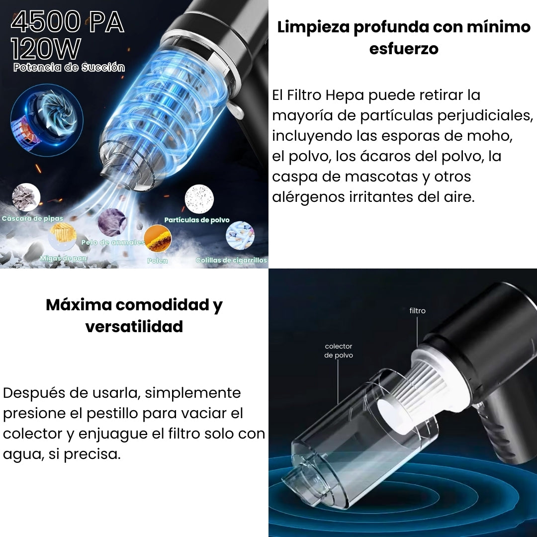 En PowerVac 360 trabajamos con materiales duraderos y un diseño pensado para ofrecerte una limpieza rápida, práctica y eficiente. Cada aspiradora está equipada con un motor de alto rendimiento, batería Li-ion de larga duración y un filtro desmontable que garantiza un funcionamiento óptimo. Antes de cada envío, cada unidad pasa por rigurosos controles de calidad para asegurarnos de que recibes una herramienta confiable, potente y lista para acompañarte en la limpieza diaria de tu hogar y tu coche.